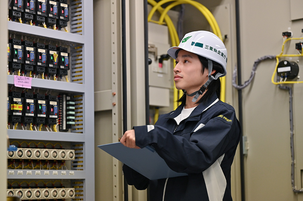 電気職員である私は、現在、水道施設の保守・維持管理業務に携わっており、安定的な水道の供給に貢献しています。